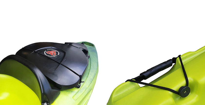 El innovador alojamiento para remo en sus bandas facilita la fijación del mismo en el kayak a la hora de pescar; el respaldo exclusivo (fijo o removible) del mercado mejora el bienestar y comodidad del tripulante, y por sobre todas las cosas con una calidad de terminación única en el mercado nacional.